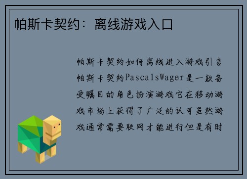 帕斯卡契约:离线游戏入口